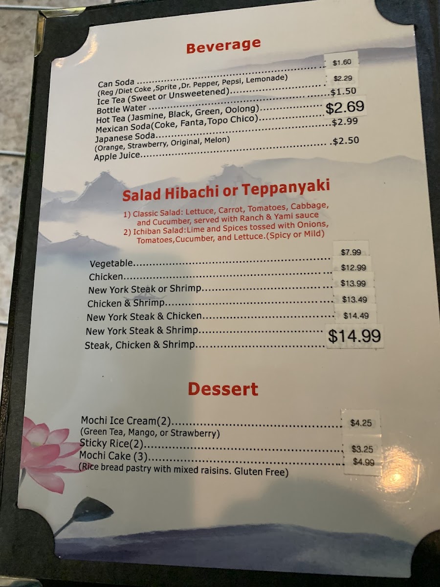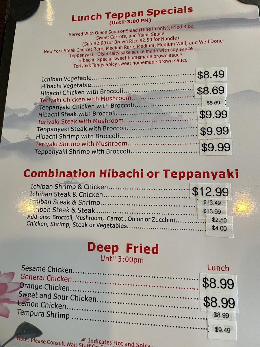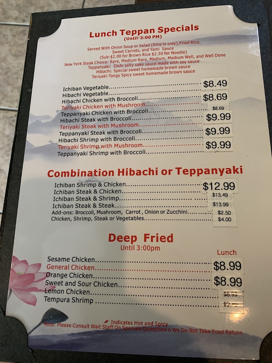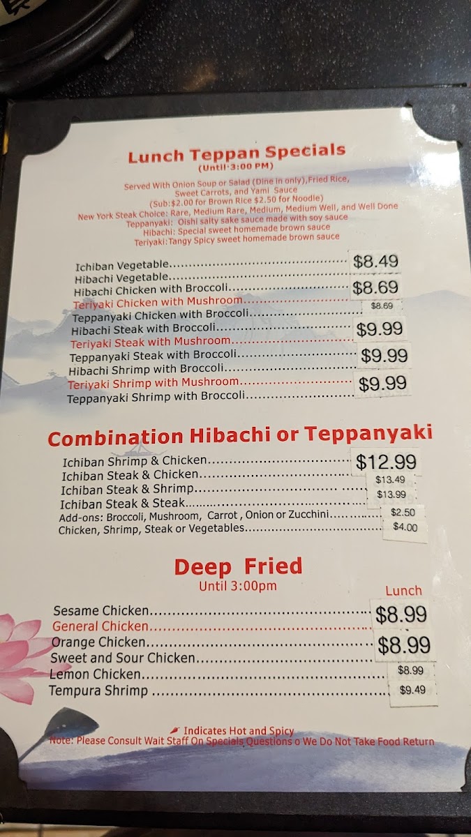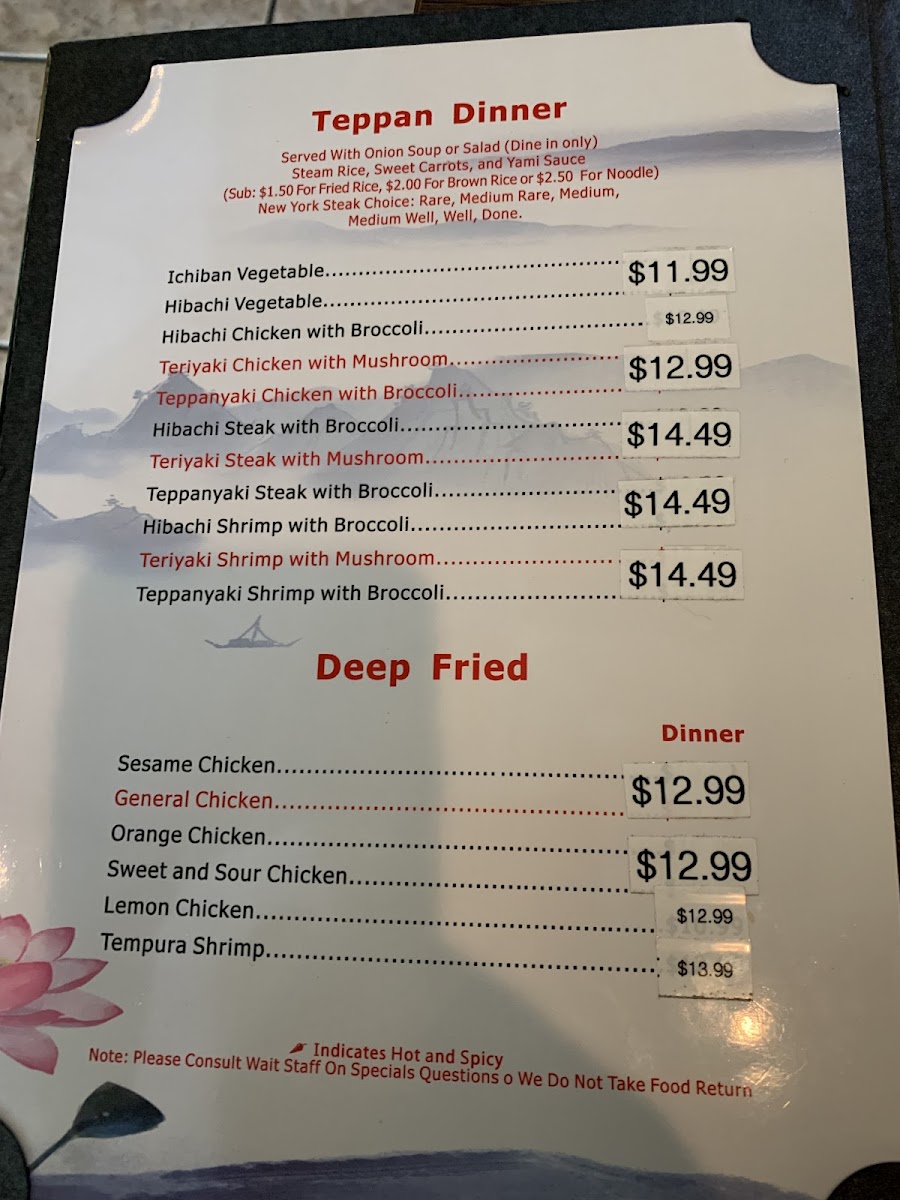 Choice of Hibachi or Teppanyaki.